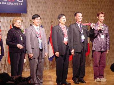 The 2nd-place team was the Guangzhou team. Ruth Unger presented them with their medals. There's Bob Lee. I played two of the members of this team (Bob was one). |
