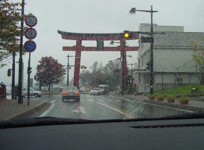 After a two and a half hour drive, which included the famous "Irohazaka Road" (which made me somewhat carsick because of all the sharp curves combined with Yab's driving style), we arrived in the little town on the shore of lake Chuzenjiko. It was raining heavily. If it looks like this photo is taken from the driver's seat, think again. Japanese cars have the steering wheel on the right side.