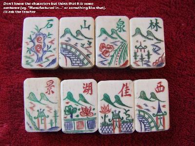I am happy to answer any other questions you might have, if I can, but please limit your questions to one mah-jongg set per email. And I don't think any more photos of these two sets would change the answers I gave you above.