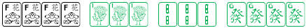 >Philip's set does not have the 'Fly' jokers (飛, fēi) but have the 'Tim Yong' jokers (聼用, tīngyòng) instead. 聼用 means to 'use for/when calling (for mahjong)'.