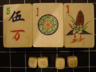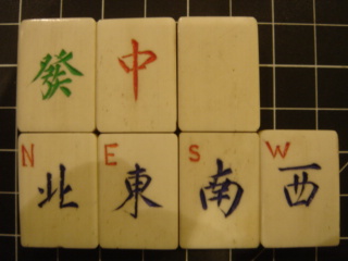 >Now in the former game there is a 'ting yong' tile. Thus, if the two characters 'ting' and 'yong' are engraved on a blank tile then that tile can act as any of the tiles from the 'cash'(circles), 'strings[of cash]'(bamboos), 'myriads'[of cash](characters) suits and any tile from the 'directions'(winds) or 'centre', 'fortune', 'blank' (the three honours triad). So this 'ting yong' tile is regarded as a 'multipurpose' tile.