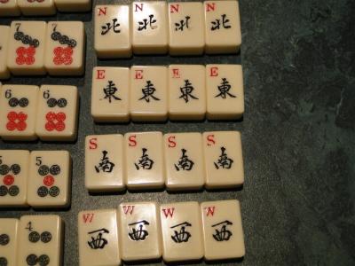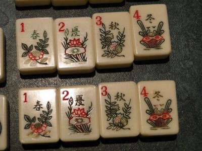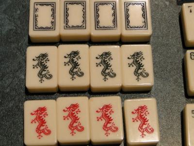 > e. 164 tiles - Dots, Craks & Brams complete. 12 Dragons, 16 Winds, 26 Flowers, 2 Blanks.