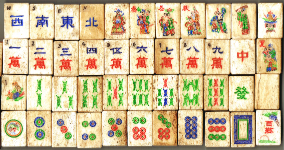 >It's a full set of bone/bamboo tiles. 1920's.
