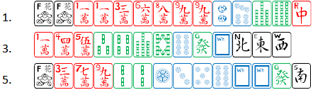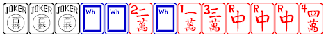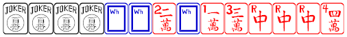 > >3 jokers 2 white dragons and a Joker 2 crack, white dragon, 1 crack, 3 crack 3 red dragons 4 crack