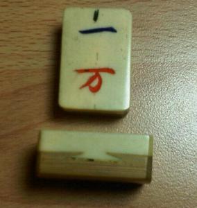 You said the tiles' condition is "very good condition (excellent?) with a very few tiles splitting at the dovetail joint" -- the condition of your tiles is "good" because any normal person would notice the defects without having to look for them. (See FAQ 7H.) But the carving is more elaborate and beautiful than many of that period, and your one bams show bamboo sprouts rather than the usual bird, both of which increase the value. Then again, I saw Haversian system lines on the unshrunk original photos of the suit tiles -- Haversian system lines decrease the value. The box is unique, which increases the value. But it has missing parts, you say, so that decreases the value. You did not mention the condition of the book.