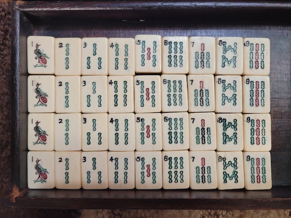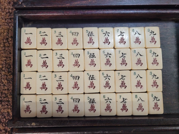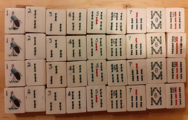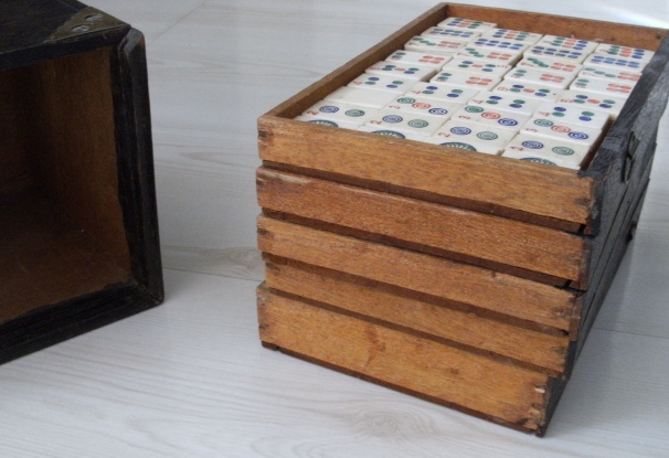 I have several older Chinese bone and bamboo sets and in the bottom divided drawer there is usually a mishmash of bone betting sticks. Each of my boxes has a random number of these sticks. My question is how many betting sticks originally came in these 1920-1940 era boxes and what denominations were included in that number. I have a variety of black dots, red dots, red and green dots, red and black dots. I don’t know anyone who has ever played with these sticks but it would be nice to have it right.