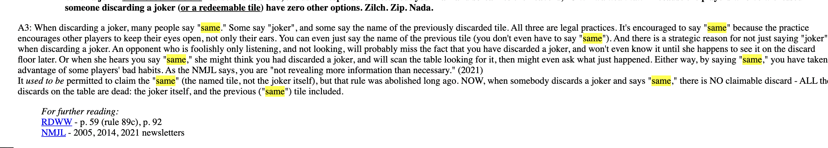 Please bookmark FAQ 19 for rules questions, and FAQ 16 for questions about the NMJL card.