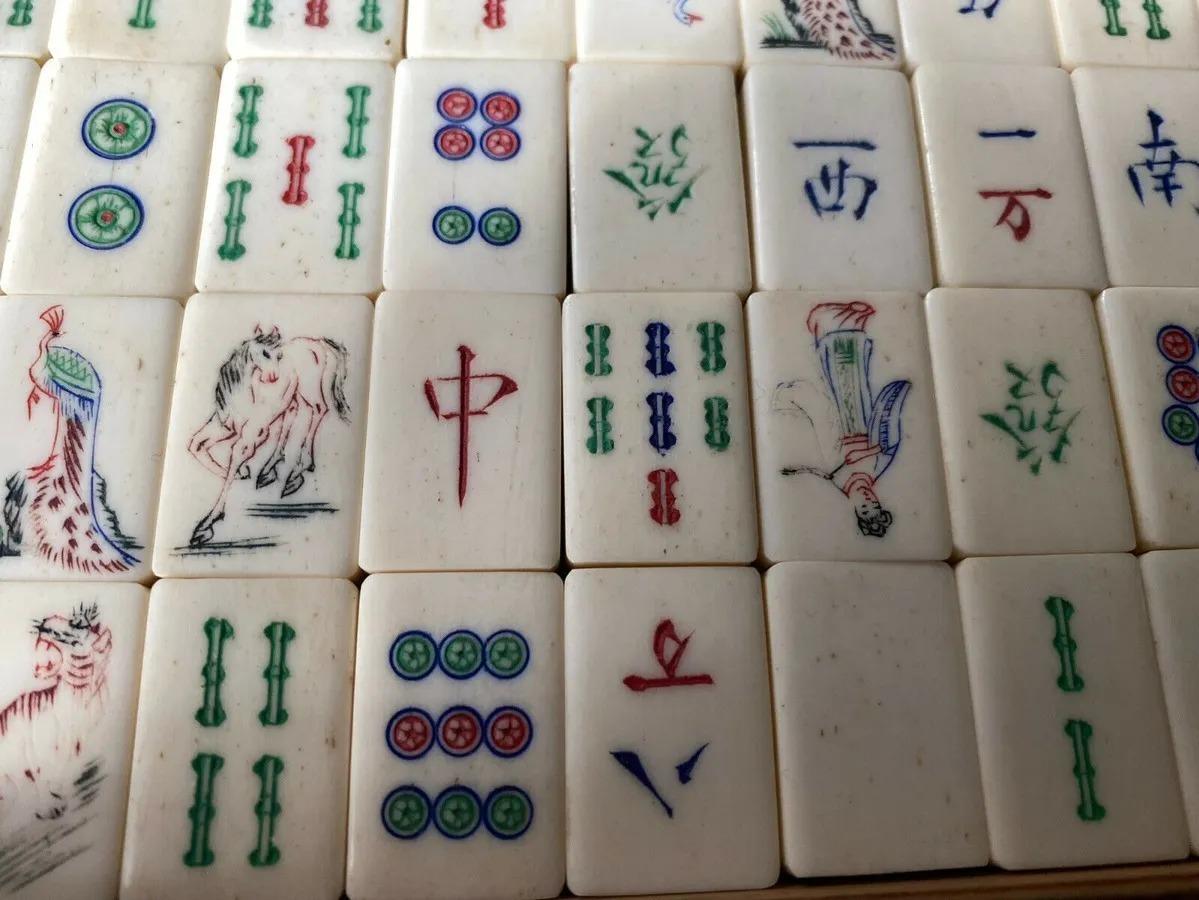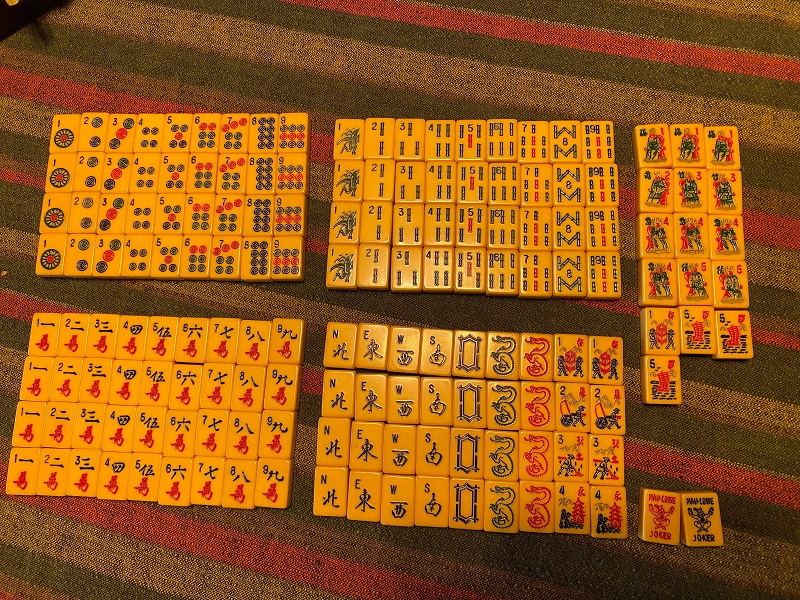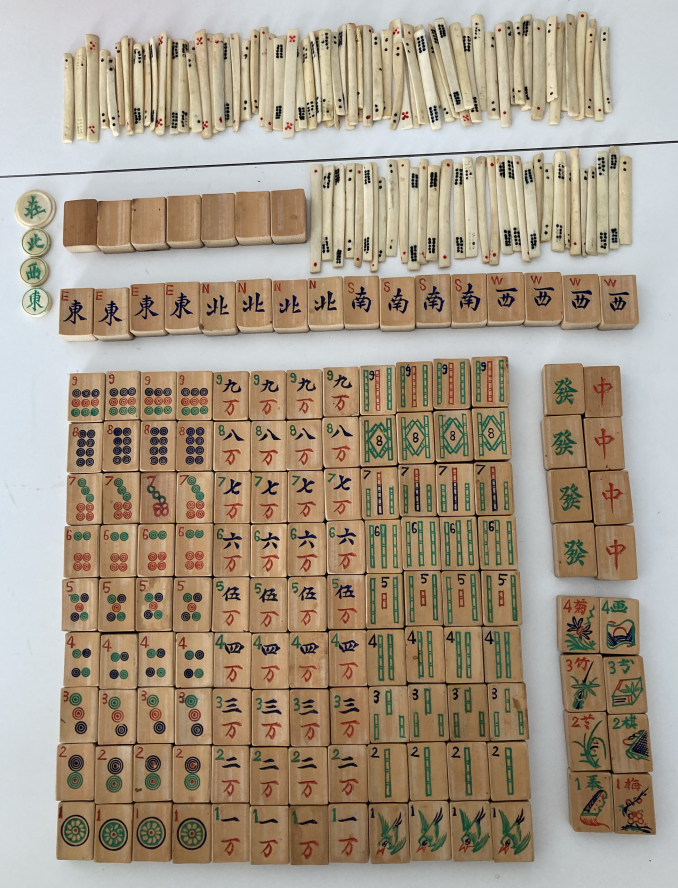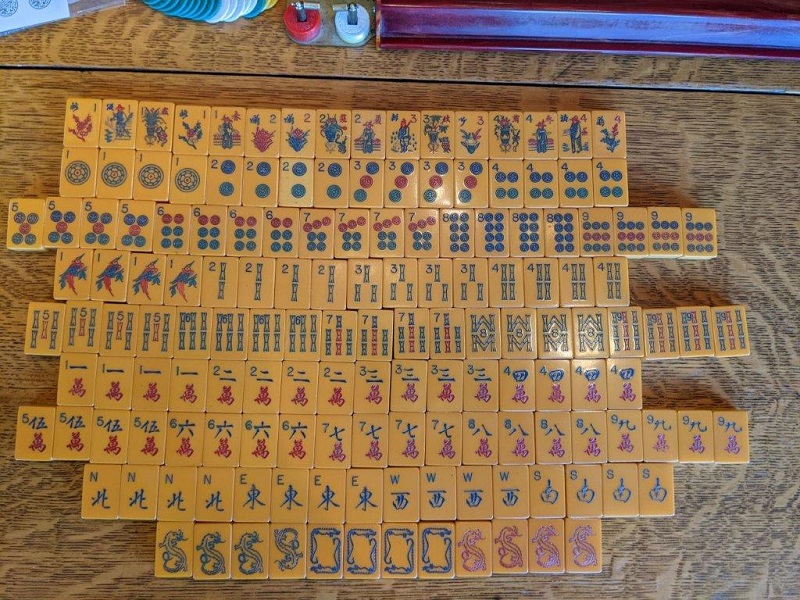 - 152 pieces (standard chinese game 144 + 4 extra blank + 4 ducks [jokers?] )