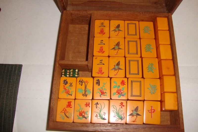 I inherited a Mah-Jong set from my Mother who I believe purchased and played with this set in the 1940’s. I do not play Mah-Jong myself so I thought I would try to sell it. However, I can’t figure out the tiles. It doesn’t have any of the Flowers Tiles but has a couple groups of tiles I can’t find in any of the sets online. These are the ones on the top right of picture. Can you tell me what these other tiles are and is this a full set of tiles that someone could play with? Is there a name for these tiles? Any idea if I could sell this set? It comes in a nice case with the 5 Bakelite racks.