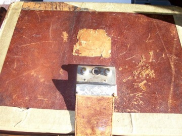 >The leather-like case has a key, 2 wooden trays and 5 Bakelite racks.