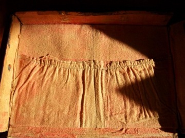 >you can still see the writing thru it, the racks are a light wood that has darkened with age.