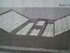 >>1. Write a factual detailed list... I have a total of 154 tiles, and I still am not sure what they are made of after reading as much as I can on them. A few of them have chipping on the back side of them—which does not look like the way plastic usually chips. There are 10 Jokers, 36 Bamboos (4 of each 1-9), 36 Circles (4 of each 1-9), 16 Wind (4 of each N, S, E, W), 36 Characters (4 of each 1-9), 4 red dragons, 4 green dragons, 4 white dragons, 8 flowers (I think you call them flowers, 2 of each 1-4). I have 2 dice. The tiles are 1 1/8"x "x 7/8" in size. The box that they came in is a red faux alligator print that locks and I have the key. It has two brass hinges that allow it to open up like a suitcase. I do not have any instructions or paper. Inside the box it reads Royal Brand by Crisloid on a sticker. It has 4 trays. The box has quite a bit of wear. There are 5 racks. Also (unsure of what it is called) a circle that spins with numbers inside it.—see picture.