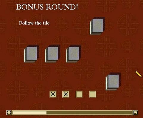 KONG - When you remove two identical pairs in a row (for instance, a pair of Three Dots and then the other pair of Three Dots), you earn a special 500-point bonus. In mah-jongg, four of a kind is called a "kong," so a little man bangs the "kong gong" whenever you remove four of a kind.