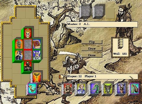 At the bottom right side of the screen are six tiles; these form the Dragon Slayer's hand. There are also three tiles at the top right of the screen; these form the Dragon Master's hand.