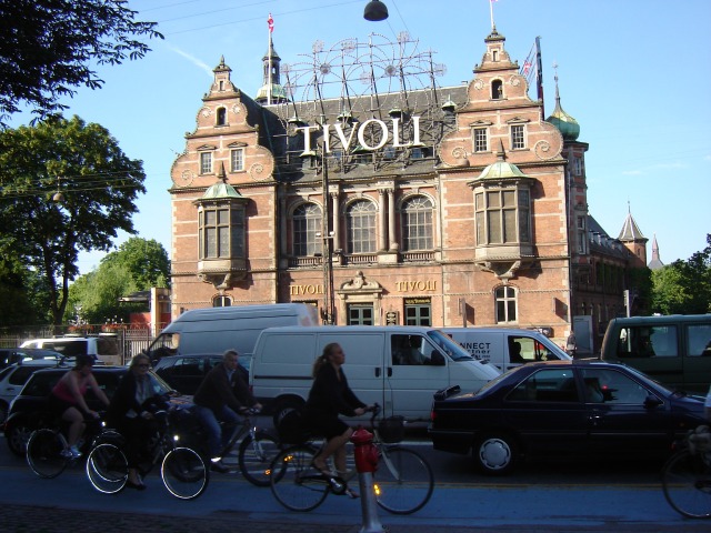 The east gate of Tivoli Gardens is right across the street from Town Hall.