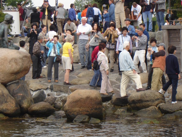 My first view of the famous "Little Mermaid" statue (far left) was from the water. Lotta tourists over there!