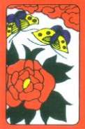 >If you want to know what's on the poetry ribbons of the Korean cards, here is my best guess: the red ribbon has two words on it. The first one is Hoong (Heung). It's said with a "short oo" sound. Like "good" "look" "book" "hoong" and NOT like "spoon" or "food". Anyways, it means joy or amusement (from a chinese character). The second one is Dahn (Dan). Sounds like the name "Don". I can't nail down the meaning but there is a short poem form in Korean called a Dahn-Ga. So I believe all together it probably means "Amusing Poem."