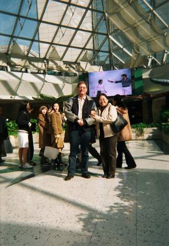 I was in Seoul for the Korean Game Developers Conference, and had gotten there a day early. My new friend, game designer Taesun Yeom, had volunteered to show me some sights. First he took me to Kamex, and then Taesun called his friend, fellow game designer Sung-Eaun Park. She came to Coex to go with us and see historical landmarks of Seoul. She told me to call her "Earny," because that's the closest we English speakers would be able to get to the proper pronunciation of her regular nickname, Eauny. Earny works for Gravity Software, the publisher of the MMORPG Ragnarok, designing games for cell phones. This is Earny and me at the food court in Coex.