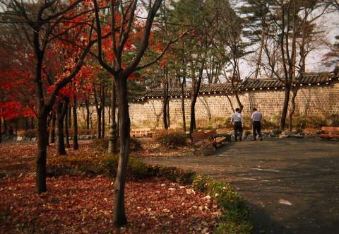 From Changdeokgung, I walked towards another nearby historical site. Along the way, I found this pleasant little park right near the Samsung building. Those guys are undoubtedly Samsung employees on a smoking break. It was much warmer this day than it had been on the day I'd gone touring with Taesun and Earny.