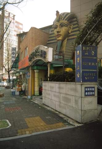 Crossing a very busy intersection near Changgyeonggung, I found this curious Egyptian-themed decoration.