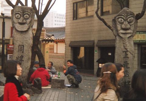 I walked from Changgyeonggung to Insadong, a terrific little shopping street. The entrance to the street is adorned by these statues.