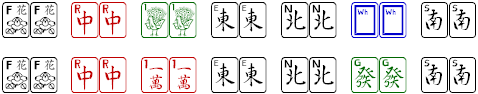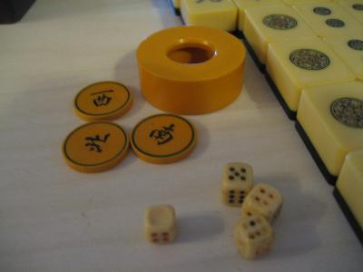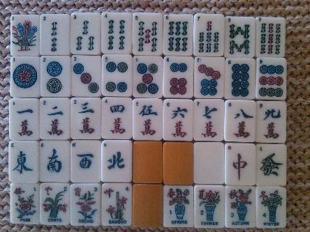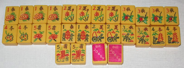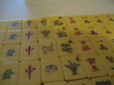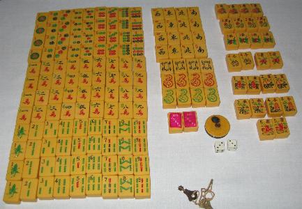 > e. 164 tiles - Dots, Craks & Brams complete. 12 Dragons, 16 Winds, 26 Flowers, 2 Blanks.