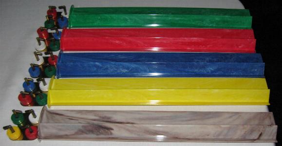 >07. Other pieces: 2 dice; 110 round chips with sq centers; 1 round bettor & 2 keys to the case, 5 racks, blue, yellow, green, brown and red. 2 wooden trays.