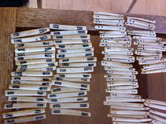 >5. Tiles are 1" x 11/16" x 1/2" dovetailed with the bamboo being 1/8" and the bone(?) being 3/8"