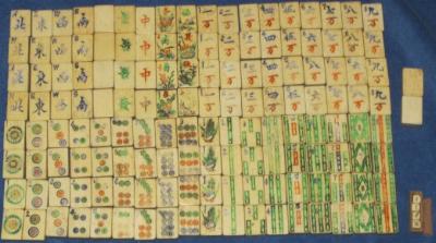 >It's a full set of bone/bamboo tiles. 1920's.