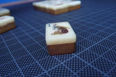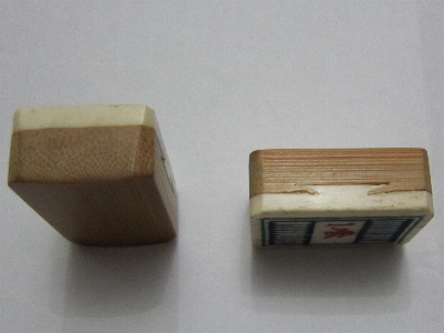 > 3] The tiles are made of bone and bamboo. Although I couldn't detect any Haversian signs, I also failed to distinguish Schreger lines or cross-hatch effect. The tiles are silky smooth but this could have been caused by extensive use over many years (see 4).