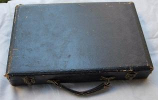 It appears to have been made in the 1930s or 1940s. Possibly later, but the wooden racks suggest 1930s. Then again, I don't suppose the racks fit in the box (so might have been acquired separately).