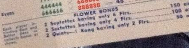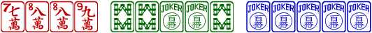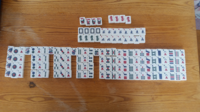 >After being in a bit of a slump for a few weeks, I made the following hand (started with three jokers) by picking in my seventh joker. I had the single and pair tiles from the beginning and two 8 Bams. The player to my right was sitting with three 8 dots in her hand. Boy the tiles were with me.