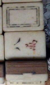And the set uses the rectangular white dragon design instead of blank tiles, the modern-style crak character (wan), and there's a lot of dirt in the gap between bone and bamboo.