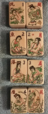 >We inherited a MahJongg set from my mother-in-law that doesn't seem to fit any of types you describe in http://www.sloperama.com/mjfaq/types.htm, so I'm hoping you can shed some light on the matter.