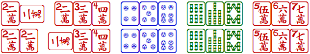 - Three mixed chows, a pair of winds and a pong in dragons or vice versa. (spela.online, Sweden)