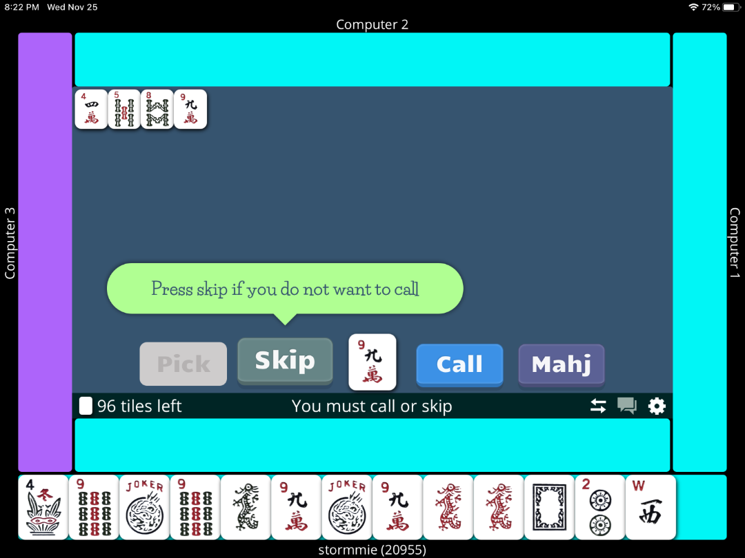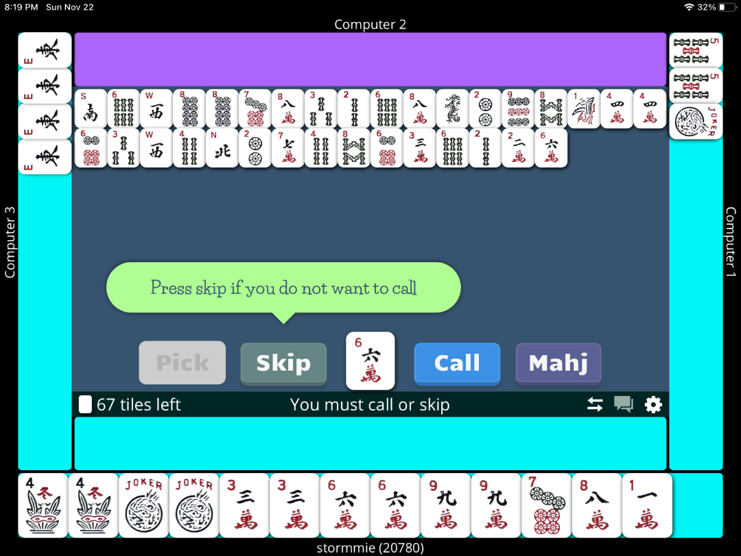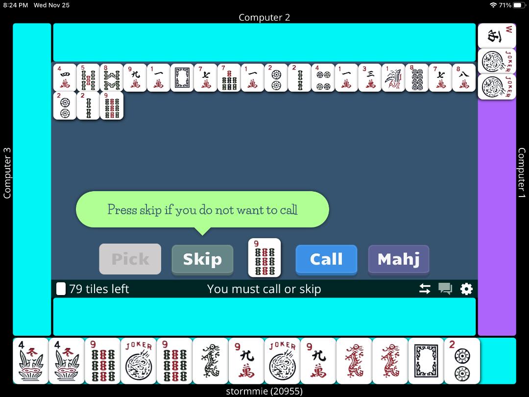 I kind of felt, I should be the winner of that game because I reacted quickly, while she was pondering..I also had exposed my hand before she even declared Maj jong...it was like a second thought on her part.