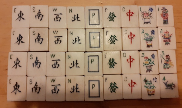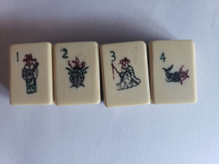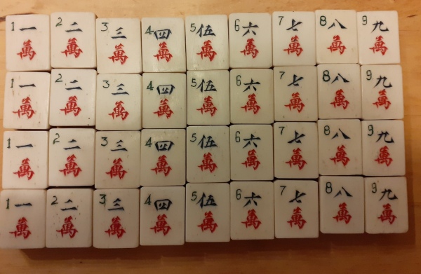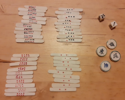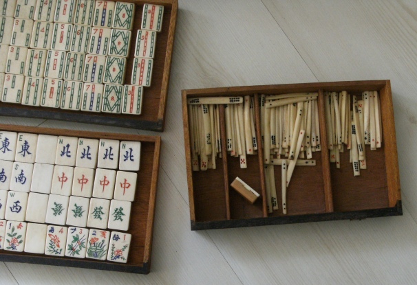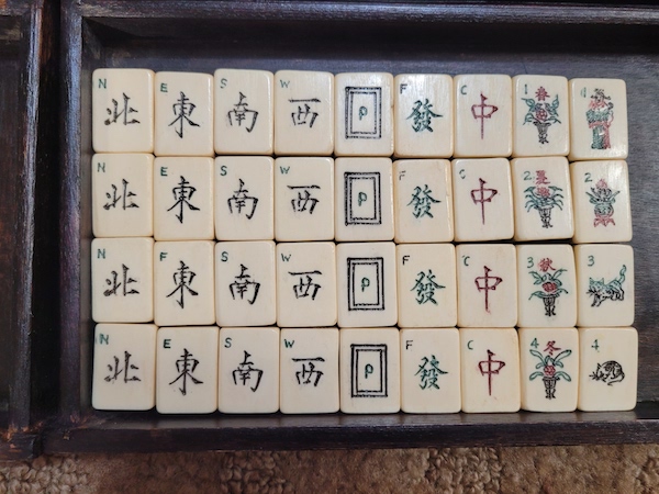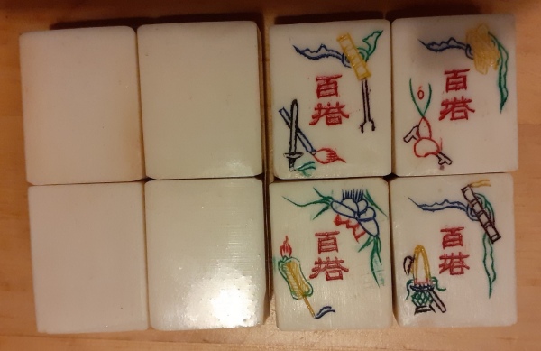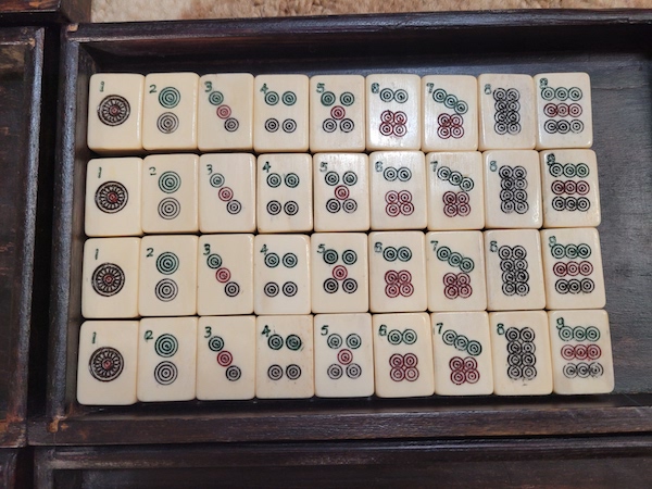 I have several older Chinese bone and bamboo sets and in the bottom divided drawer there is usually a mishmash of bone betting sticks. Each of my boxes has a random number of these sticks. My question is how many betting sticks originally came in these 1920-1940 era boxes and what denominations were included in that number. I have a variety of black dots, red dots, red and green dots, red and black dots. I don’t know anyone who has ever played with these sticks but it would be nice to have it right.