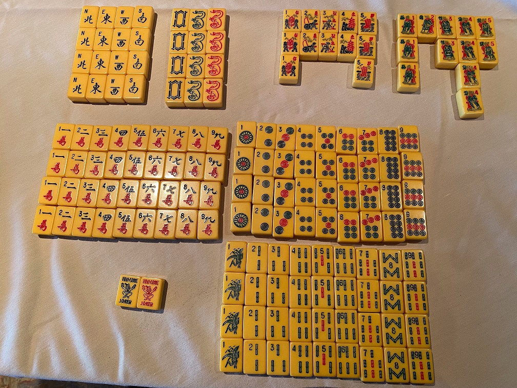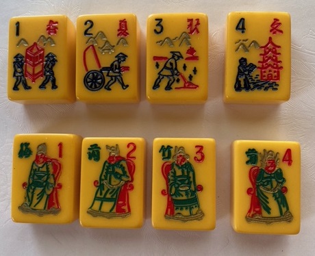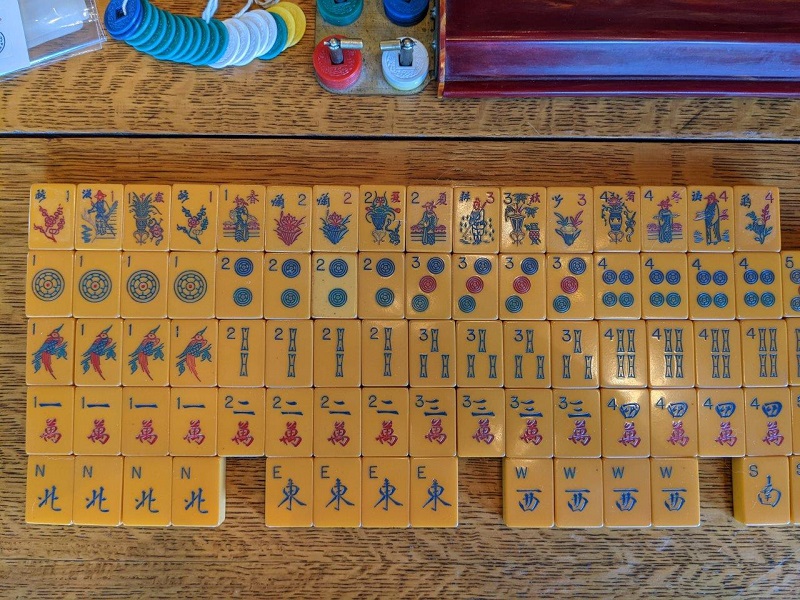 I inherited a Mah-Jong set from my Mother who I believe purchased and played with this set in the 1940’s. I do not play Mah-Jong myself so I thought I would try to sell it. However, I can’t figure out the tiles. It doesn’t have any of the Flowers Tiles but has a couple groups of tiles I can’t find in any of the sets online. These are the ones on the top right of picture. Can you tell me what these other tiles are and is this a full set of tiles that someone could play with? Is there a name for these tiles? Any idea if I could sell this set? It comes in a nice case with the 5 Bakelite racks.