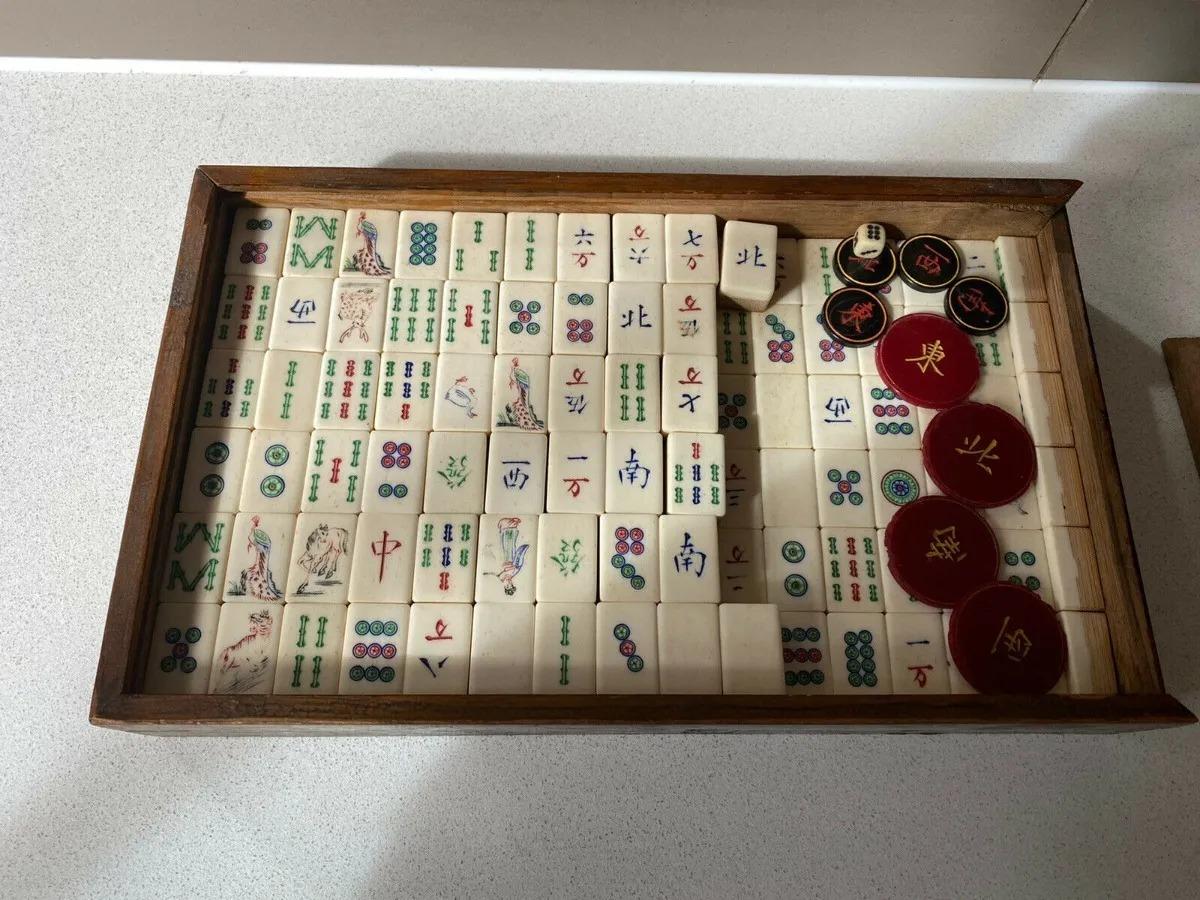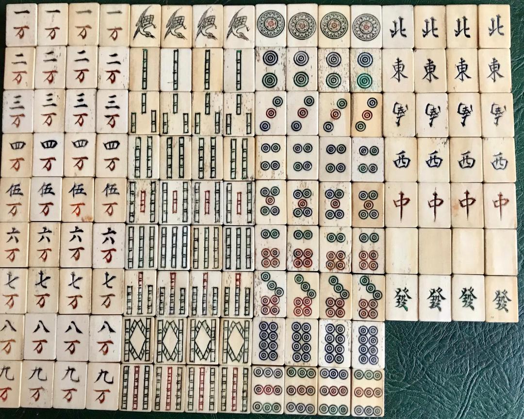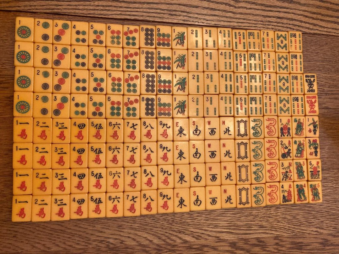 - 152 pieces (standard chinese game 144 + 4 extra blank + 4 ducks [jokers?] )