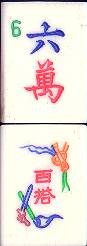 Bamboo -- Also used in less expensive sets, primarily Chinese sets, is solid bamboo. These tiles are cut from bamboo and usually have a curvature to both sides, reflecting the structure of the bamboo. They may be the natural color of bamboo (shown), or they may be painted, generally black with bright designs. Again these are collected more as a curiosity, since they are difficult to play with. |