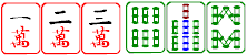 Note: you can never take a discard to expose a PAIR by itself. You can take a discard to complete a pair only when you already have four complete three-tile groupings (i.e., when completing the pair completes the hand).