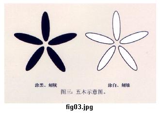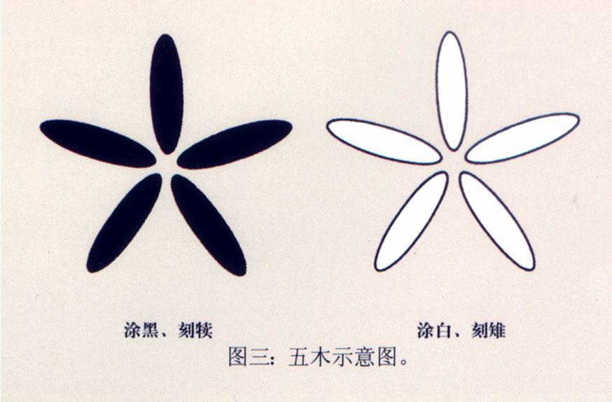 Figure 3. John Low: Figure 3 is just the pictures of the "Wu Mu" (Five Woods/Slats) face up and face down. One side is black with a little cow, the other side is white with a wild chicken. |