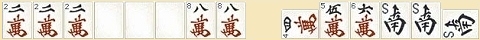 Note: Some computer games will let you claim mahjong despite a furiten or lack of yaku - when you do declare false mahjong, though, an error penalty applies. A penalty error is called chombo, and the penalty is that you must pay 8000 points : 4,000 to the dealer (oya) and 2,000 to the two non-dealers (ko). If you are the dealer, the penalty is 12,000 points: 4,000 to each of the three others. Your computer game may have an optional setting so you can choose to have the penalty apply, rather than have a penalty action merely disallowed. Some players might prefer a realistic penalty (in order to learn more effectively) and others might prefer a more leisurely play experience.