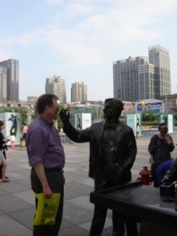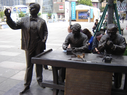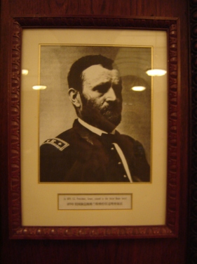In Shanghai, I was met by a driver Sushila's travel agent had hired, and was driven into the city. Even though I'd made Shanghai tile-matching games for nine years at Activision, this was the first time I'd ever been to the city itself. The only things I knew about Shanghai were that it was a special economic region of China, very vibrant and modern, with a colonial waterfront called The Bund. And sure enough, after a while I started seeing old architecture among the new, and I was deposited at the Astor House Hotel, a very quaint and very old brick building. In the lobby there were pictures of famous former guests: President Ulysses S. Grant and Albert Einstein among them.